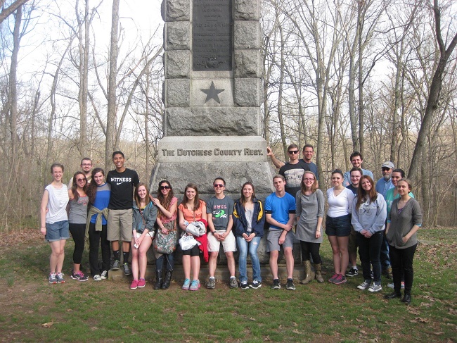 The Honors Program visited Gettysburg in the spring of 2015. "The Honors Program trip to Gettysburg was the best experience I've had at Marist by far," said Samantha Leenas, a sophomore in the Honors Program. "It was eye opening to hear Dr. Marshall and Professor Morreale speak about the personal accounts of civil war soldiers. Reenacting Pickett's Charge, singing along to Civil War songs, and visiting all of the battlefield monuments made for an amazing, enriching learning opportunity."