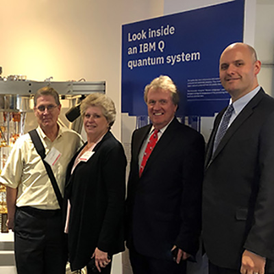 School of Management administrators and faculty members were brought up to speed on IBM’s latest technological initiatives while visiting the company’s T. J. Watson Research Center in Yorktown Heights, NY. Deans Lawrence Singleton, Joanne Gavin and James Phillips, along with professors David Gavin, Alexander Henderson, Jay Pantaleo and J. Donald Warren, Jr. attended the Sept. 6 event, which featured several presentations focused on the future of computing. The group observed a demonstration of the Project Debater, a machine that uses digital information to debate a known expert on a particular subject. Using artificial intelligence to help determine the creditworthiness of a potential borrower was discussed. Other topics included Blockchain technology, Big Data analytics, the Internet of Things and quantum computing.