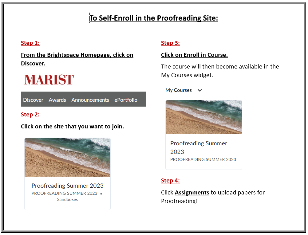 - On-Line Proofreading: Go to brightspace.marist.edu and log into Brightspace using your Marist account and password