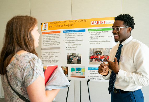 Each summer, a cohort of highly motivated Marist students remain on campus to participate in the Marie and Rupert Tarver Summer Internship program, which enables undergraduates to work on a community improvement project in collaboration with a local non-profit organization. Participants receive a substantial stipend, tuition credits, and on-campus housing for the duration of the program. As an integral component of the program, interns affiliate with an approved nonprofit organization in the Hudson River Valley and complete agreed-upon goals and objectives during the summer term. Tarver Interns work with faculty and their nonprofit partner to design their internship project and identify the key issues that their work will address.