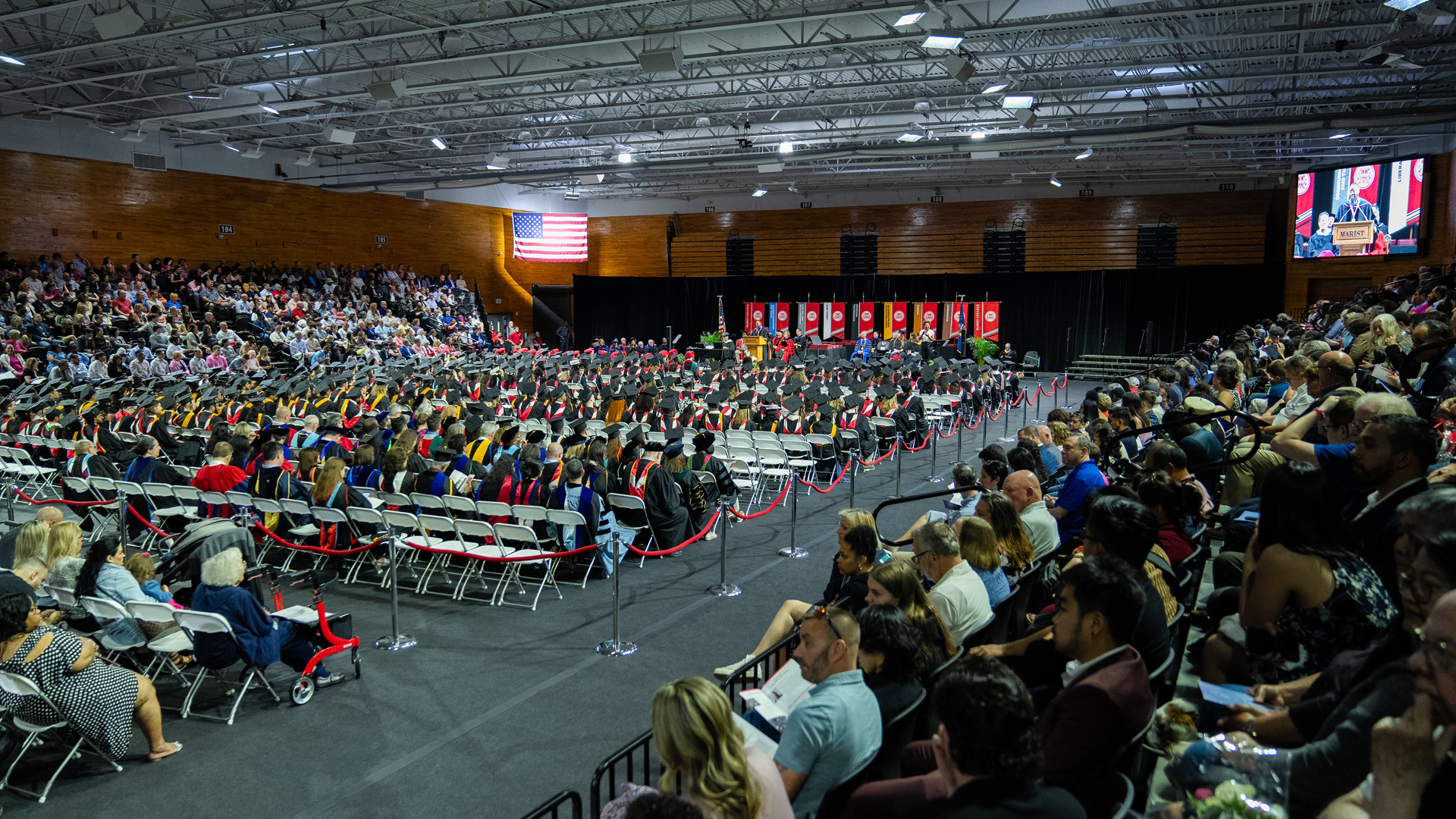 Parking and seating are first-come, first-serve. You’ll need to allow time to walk/wheel to the university Commencement ceremony.