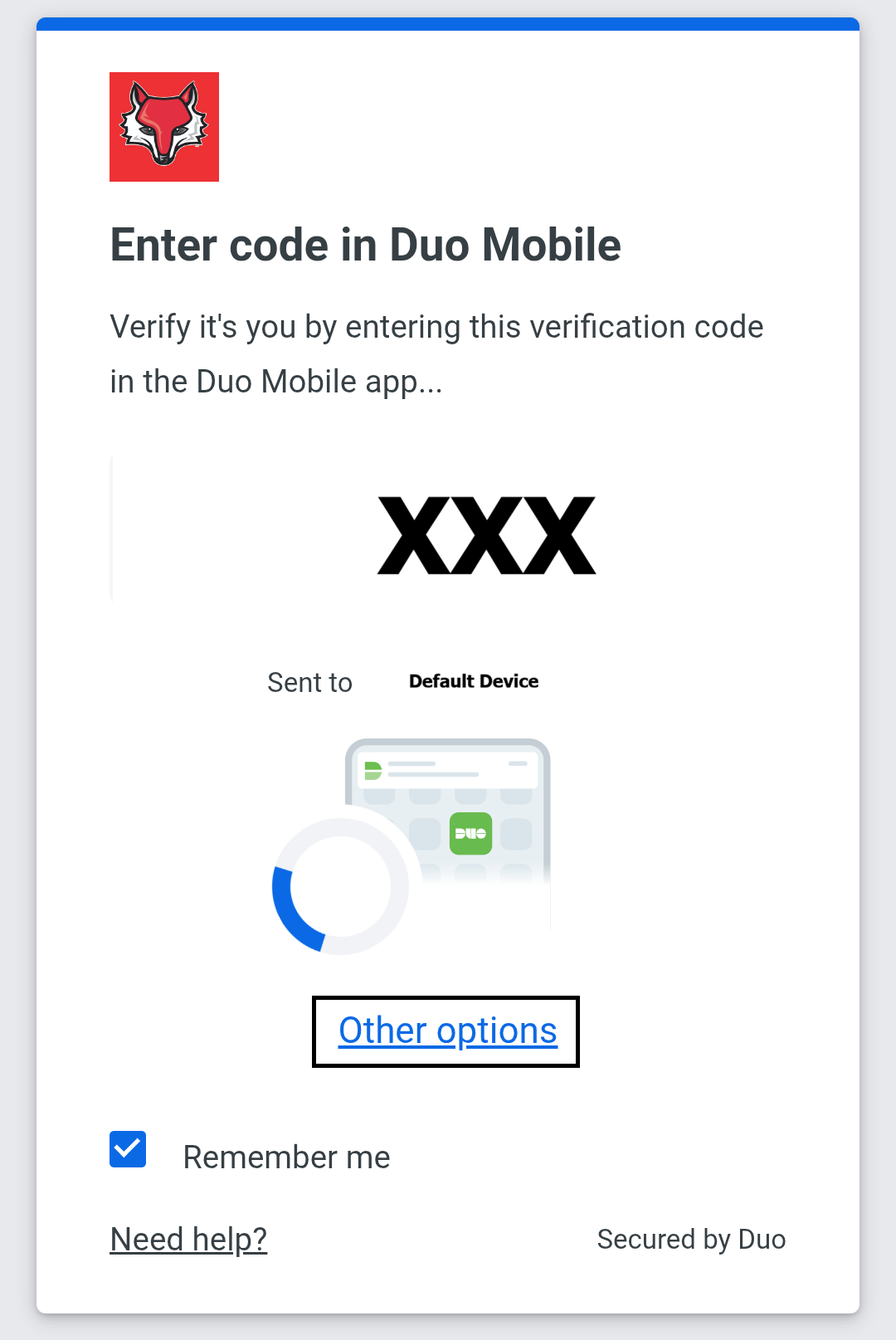 Go to any Marist service from your mobile device while not on the Marist network and you will get a three digit code on your current device. From here, select Other Options.