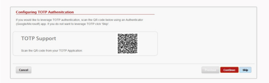 You can skiip this step and return to it once your ReACT profile is set up. Once you have completed the TOTP setup, click Continue. You may also Skip this step.