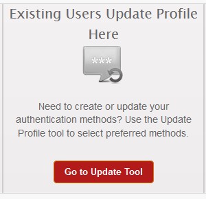 From the Self-Service Portal, select the Go to Update Tool button found in the box Existing Users Update Profile Here.