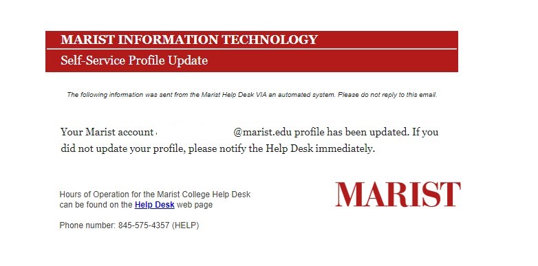 You will also receive an email once the Profile Change completes. This email will be from the Marist Help Desk (HelpDesk@marist.edu) with the subject: ReACT Profile Update