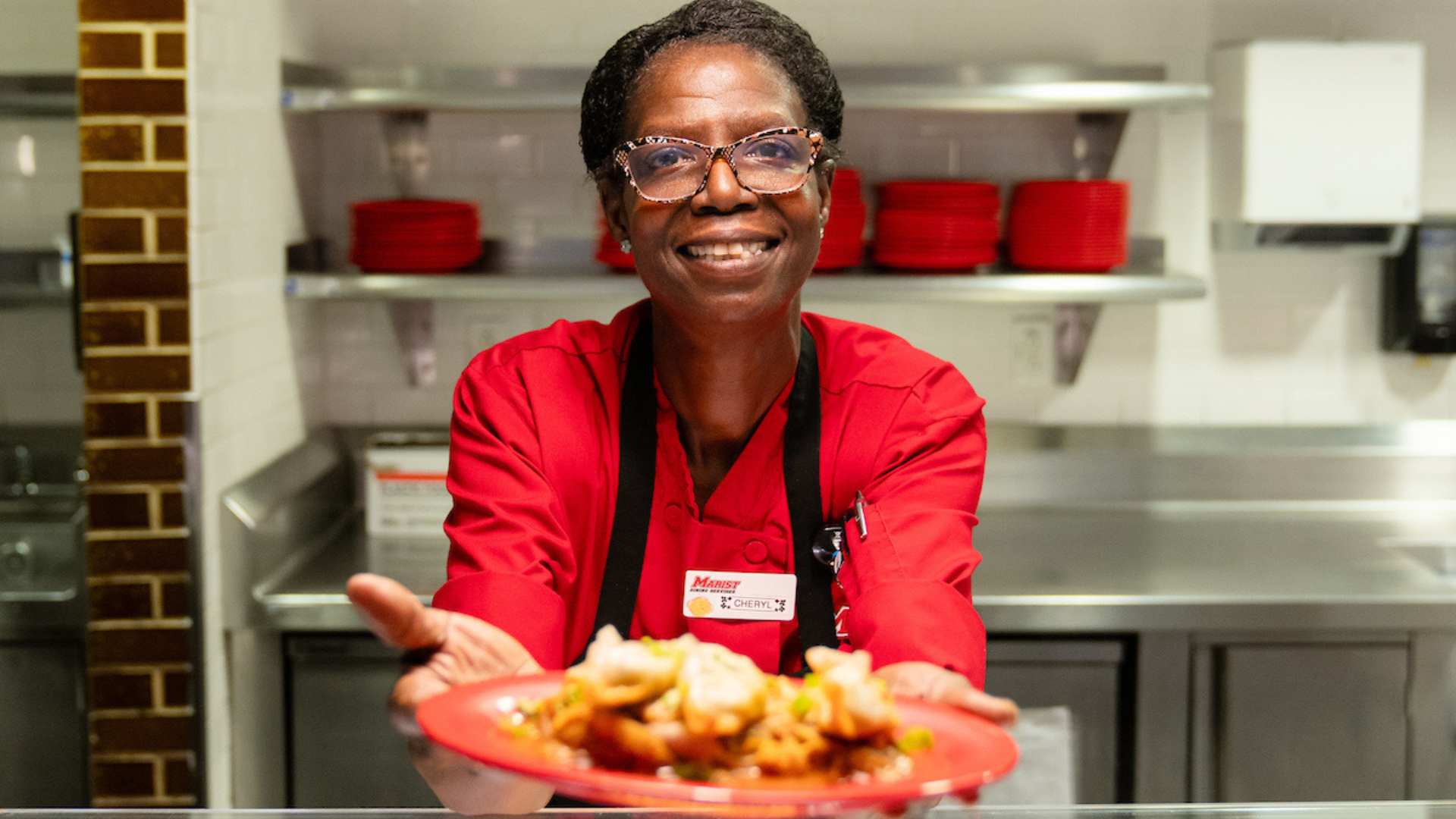 Marist Dining delivers fresh, from-scratch meals made with wholesome, locally sourced ingredients. Students enjoy a wide variety of cuisines—from handspun pizza and global street foods to made-to-order international dishes. Marist Dining emphasizes inclusivity, with robust plant-based options and allergy-friendly meals that ensure all students can dine with confidence. From the Murray Dining Hall in the Student Center to the Steel Plant Café and international cuisine in the North End complex, there are more than a dozen eateries on campus.