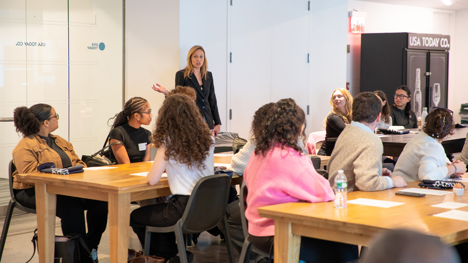 Image of Lark-Marie Anton speaking to students at USA TODAY.